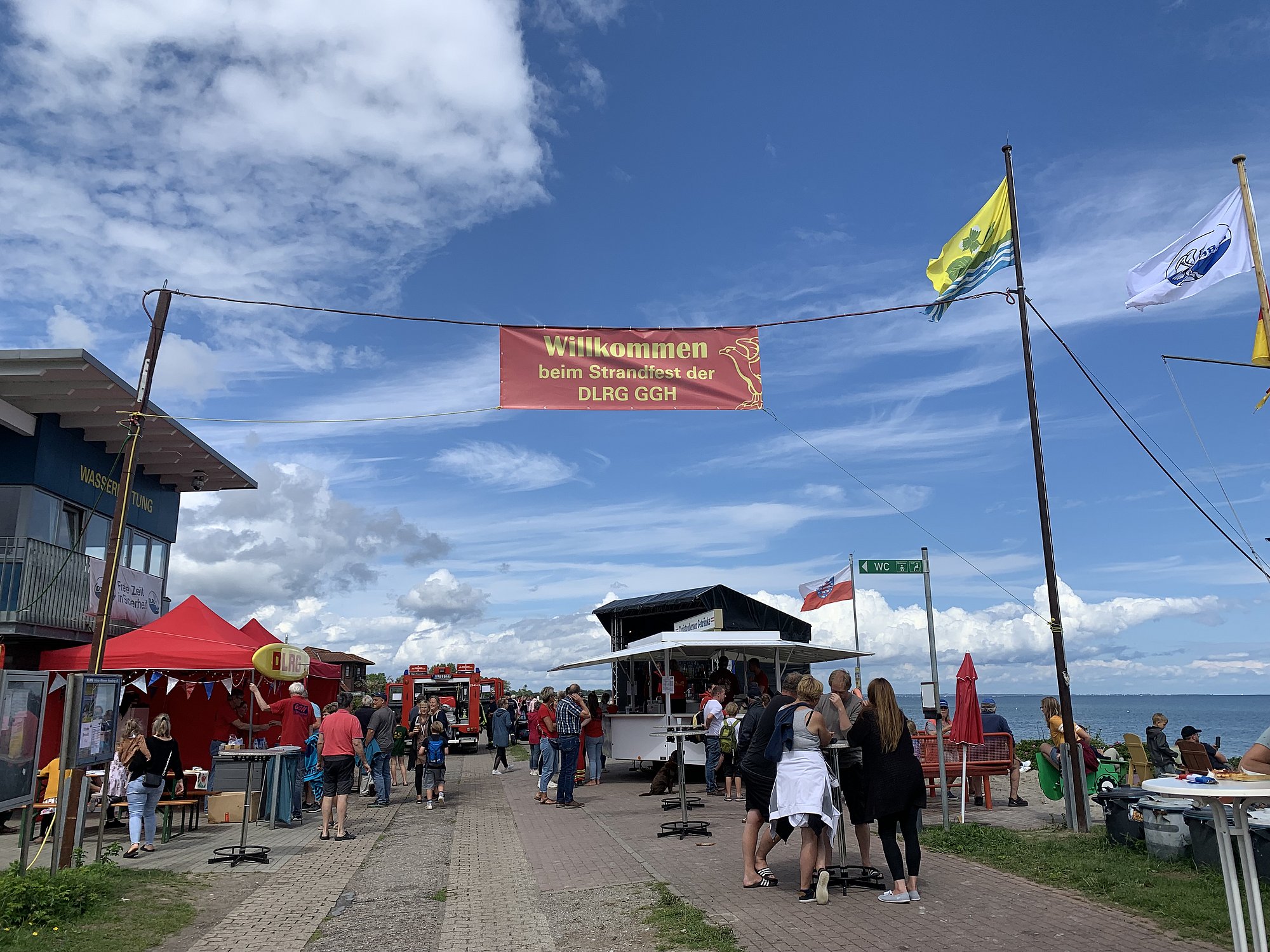 Am 2. August 2025 fand unser DLRG-Strandfest statt – und trotz dicker Regenschauer war es ein voller Erfolg! Der Deich in Hasselberg verwandelte sich in eine lebendige Festmeile mit einem bunten Programm für Groß und Klein. Von der Spielemeile über Kinderschminken, Trike- und Alligator-Fahrten bis hin zu kreativen Bastelaktionen und einer Hüpfburg war für jeden etwas dabei. Besonders hervorzuheben sind die Vorführungen der DGzRS und unsere DLRG-Rettungsübung. Kulinarisch verwöhnte die Food-Meile mit vielfältigen Leckereien, und am Abend sorgte die Live-Band „Die Doppelzentner“ für ausgelassene Stimmung und einen stimmungsvollen Ausklang.